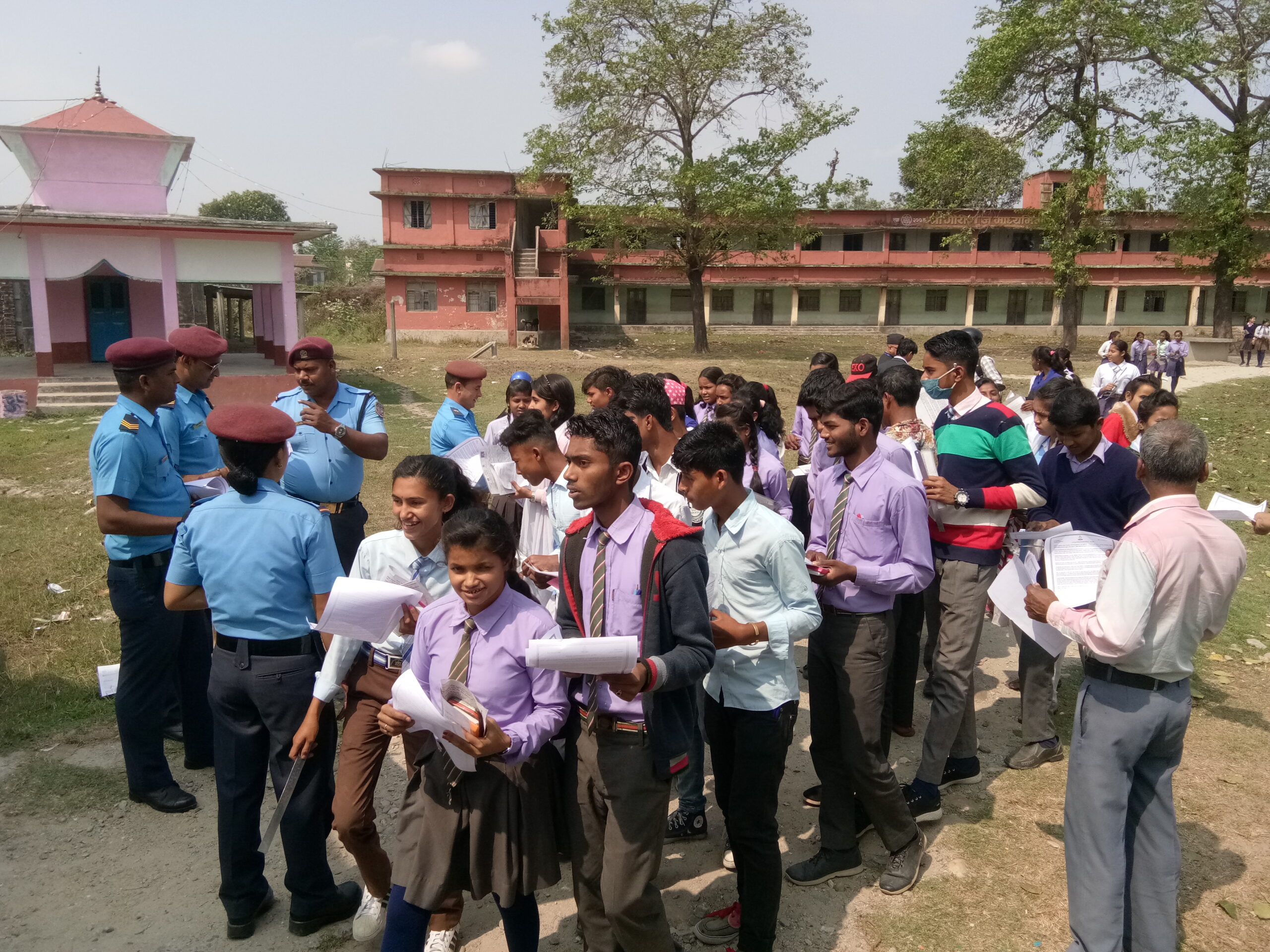 एसइइ परीक्षा दिइ सकेपछीको खाली समयमा बिद्यार्थीहरु लाइ लागु औषध बिरुद्ध चेतना जगाउन गौरीगञ्ज वडा नँ ३ का वडाध्यक्ष मखना महतो गौरीगञ्ज माबिका प्रअ गोबिन्द घिमिरे लगायत इलाका प्रहरी कार्यालयको टोली पर्चा बितरणमा आफै खटिएका थिए ।