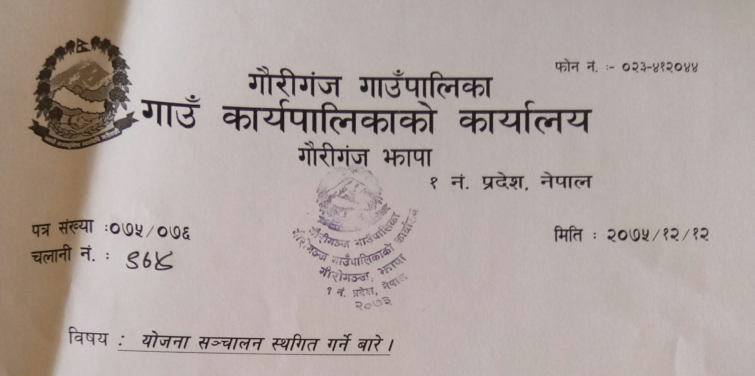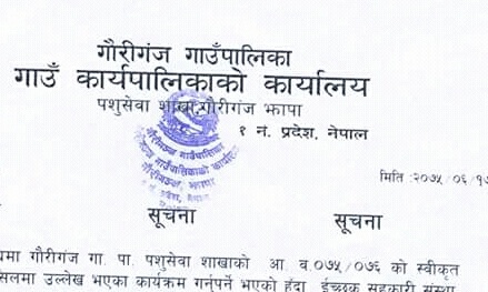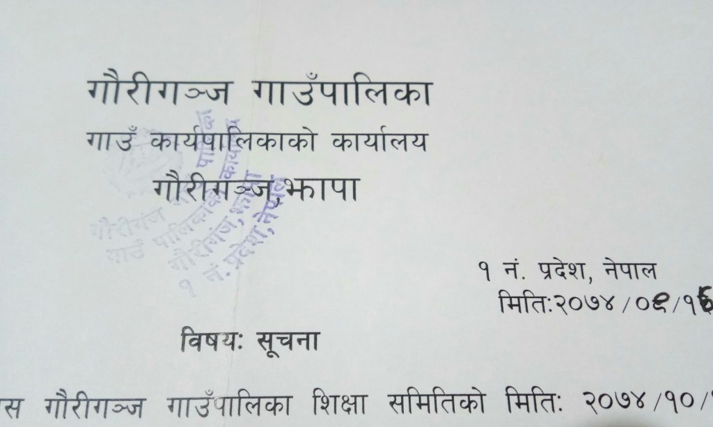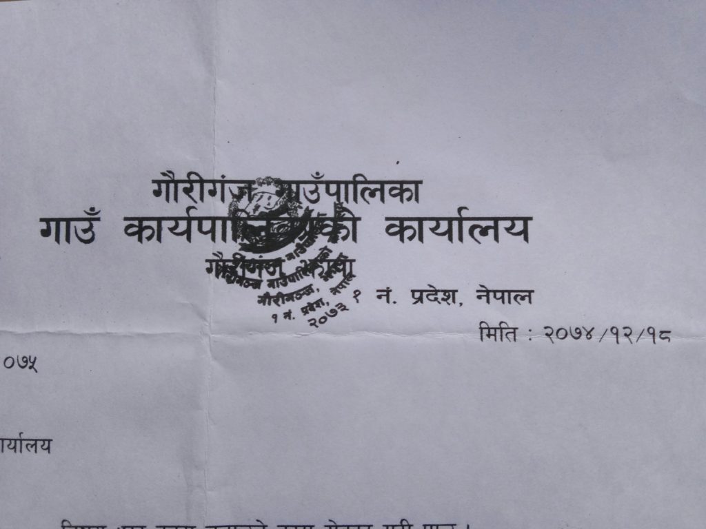 गौरीगञ्ज गाउँपालिकाको लेटरप्याडमा प्रयोग भईरहेको छाप