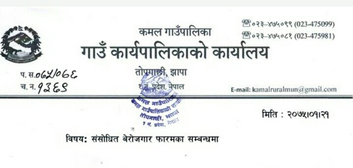 कमल गाउपालिकाको लेटरप्याडमा प्रयोग भएको स्टाम्पको ढाँचा
