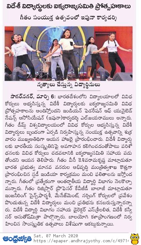 गौरीगञ्ज । शनिबार दक्षिण भारतका प्राय सबै पत्रिकाहरुमा नेपालकी ६ जना युवतीहरु कभर बनेका छन् । उनिहरु शुत्र्रबार बिशाखापट्टनमको गीतम् युनिधर्सिटीमा आयोजित इन्टरनेश्नल स्टुडेन्ट्स फेस्टिभल सँयुक्त २०२० कार्यक्रममा उत्कृष्ट नृत्य गरेपछी उनिहरु त्यहाबाट प्रकाशित हुने प्राय सबै समाचार पत्र तथा अनलाइनहरुमा हेड्लाइन बनेका छन् ।