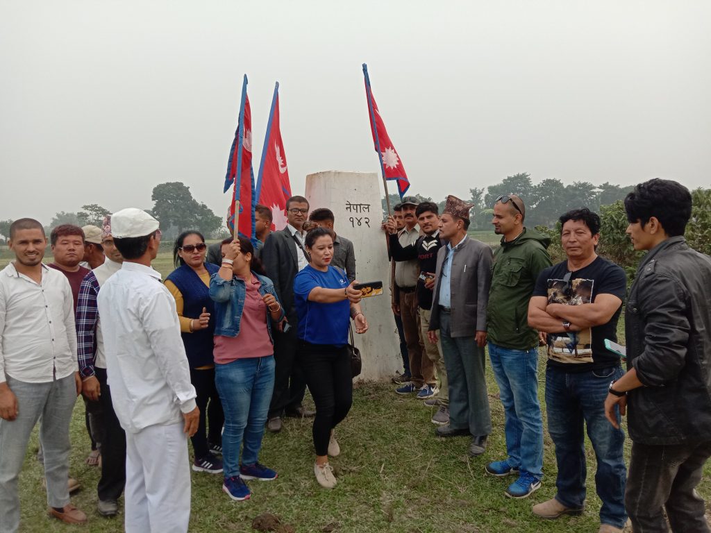 गौरीगञ्ज । मँसिर ९ । केहि दिन अघि गौरीगञ्ज दर्पण डटकमले झापाको गौरीगञ्ज २ पिण्डाल घुटुमा भारतिय पक्षले नेपाली भुभाग मिचेर बिच गाउँमा सीमा पिलर गाडेको समाचार प्रकाशित गरेपछी ज्ञानेन्द्र शाही नेतृत्वको “नेपालका लागि नेपाली” अभियानका झापा अभियन्ताहरुले सो क्षेत्रमा पुगेर नेपाली झण्डा गाडेको छ । अभियानका झापा सँयोजक महेन्द्र प्रसाइको नेतृत्वमा आएको टोलीले सो क्षेत्रको अबलोकन गरि स्थानियहरु सँग कुराकानी समेत गरेका थिए । टोली सँग स्थानीयहरुले २०५५ साल पछी पुरानो सीमा हुदा हुदै सीमा स्तम्भहरु पश्चिम सारेको कुरा बताएका थिए । उनिहरुले आफुहरु सँग नेपाली धनीपुर्जा रहे पनि सो पुर्जामा उल्लेखित पचासौ बिघा जग्गा भारतियहरुको कब्जामा रहको कुरा बताएका थिए ।