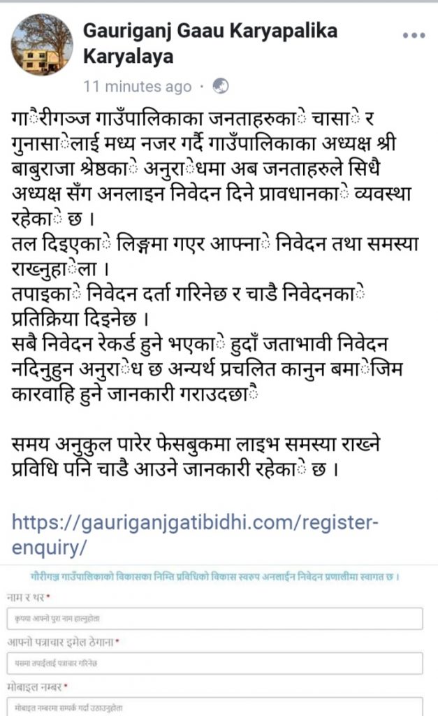 गौरीगञ्ज गाउँपालिकाको अफिसियल फेसबुक एकाउन्टमा समेत सो सुचना प्रकाशित गरिएको छ ।