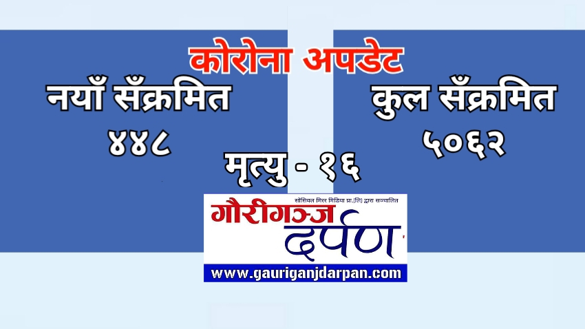 यो सँगै नेपालमा कुल सँक्रमितको सँख्या ५ हजार ६२ पुगेको छ भने ८७७ जना डिस्चार्ज भएर घर फर्केका छन् सँकमरमणका कारण मृत्यु हुनेको सँख्या १६ पुगेको छ ।