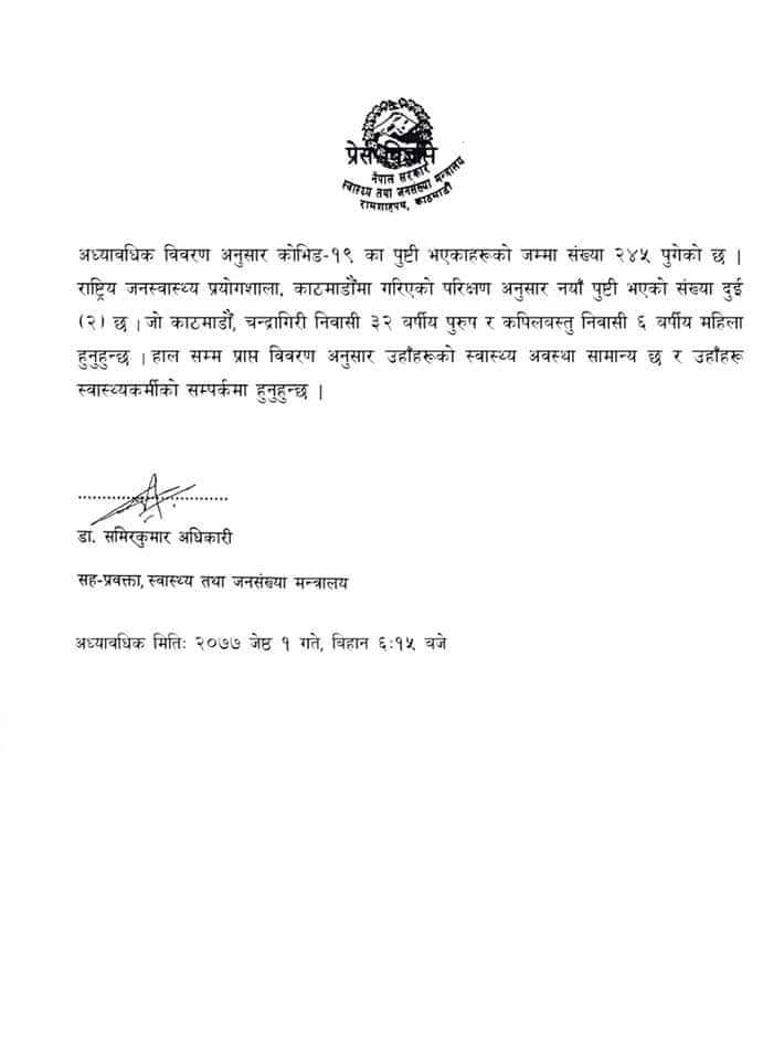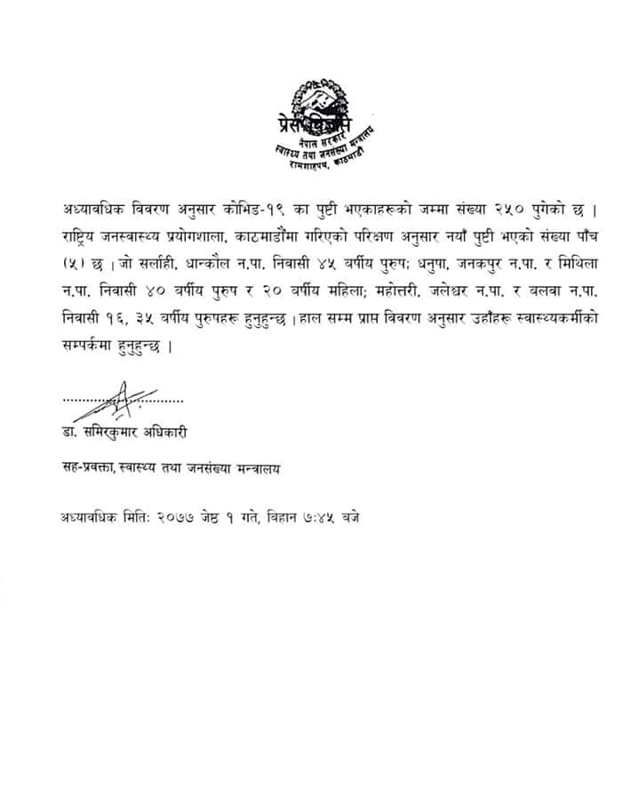 यो सँगै सँक्रमितको सँख्या २५० पुगेकोछ ।
