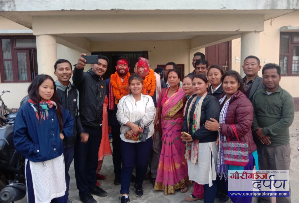 गाउँपालिकाको सभाहलमा बुधबार एक औपचारिक कार्यक्रमको आयोजना गरि स्वागत र बिदाइ गरिएको हो । २०७४ साल चैत देखि हाल सम्म लगातार १९ महिना सम्म गौरीगञ्ज गाउँपालिकाको कार्यकारी अधिकृतका रुपमा लगातार सफल कार्यसम्पादन गरेका शाक्य सरुवा भएर भोजपुर जिल्ला समन्वयको कार्यालयमा पोस्टिङ भएका छन् भने गौरीगञ्ज गाउँपालिकामा प्रमुख प्रसाशकीय अधिकृतका रुपमा झापा भद्रपुर पृथ्वीनगरका प्रबिण दाहाल आएका छन् । ब्याबस्थापन बिषयमा स्नातकोत्तर गरेका दाहाल २०६८ साल ताका खरिदारका रुपमा निजामती सेवामा प्रवेश गरेका थिए । उनि गौरीगञ्ज आउनु अघि पाचथरको हिलिहाङ गाउँपालिकामा कार्यरत थिए ।