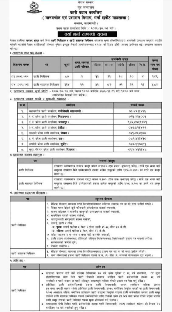 के तपाईँ प्रहरी निरीक्षक (इन्सपेक्टर) र प्रहरी सहायक निरीक्षक (असई) बन्न चाहानुहुन्छ ? यदि हुनुहुन्छ भने नेपाल प्रहरीले ती दुई पदमा भर्ना खुलाएको छ ।