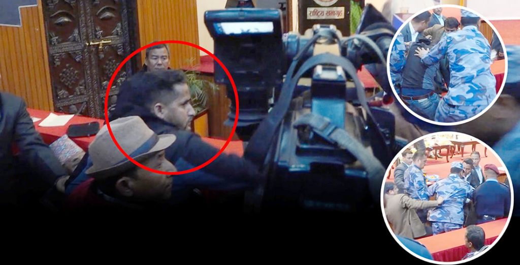 जुत्ता प्रहार गर्ने व्यक्तिलाई नियन्त्रणमा लिइएपछि लात्ती प्रहार गरिएको छ ।रतनमाथि प्रचण्डका प्रेस संयोजक विष्णु सापकोटा ‘जुगल’ ले लात्ती प्रहार गरेका थिए ।
