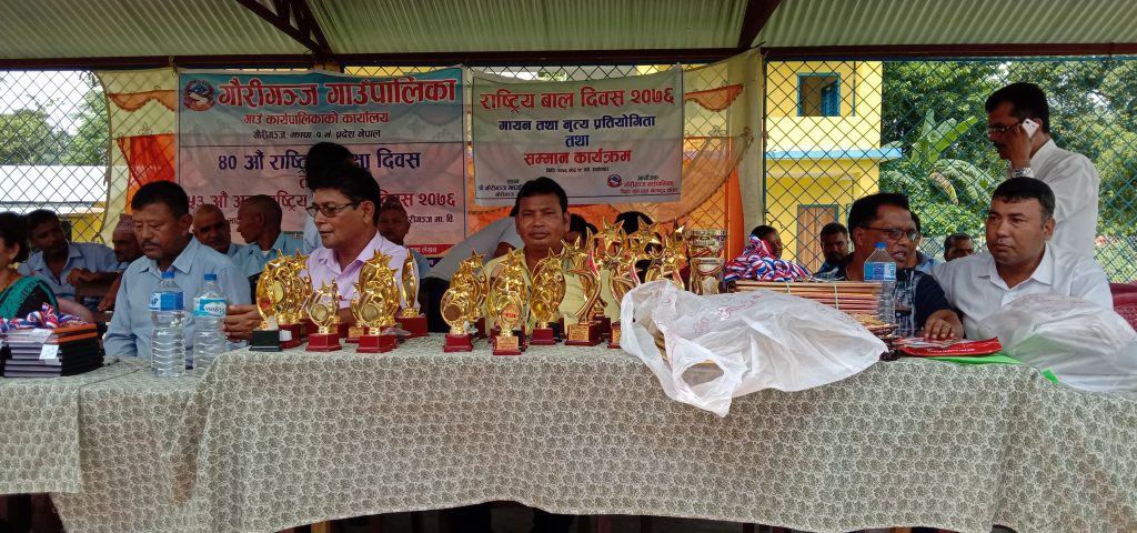 गौरीगञ्ज २९ भदौ । बाल दिबसको अबसरमा गौरीगञ्ज गाउँपालिकाले गाउँपालिका भित्रका बिद्यालयहरु बिच अन्तर बिद्यालय गायन तथा नृत्य प्रतियोगिता सम्पन्न गरेको छ । गौरीगञ्ज माबिको मञ्चमा आयोजित प्रतियोगितामा गाउँपालिका भित्रमा सामुदायिक र सँस्थागत गरि करिब ४० बिद्यालयको सहभागिता रहेको थियो ।