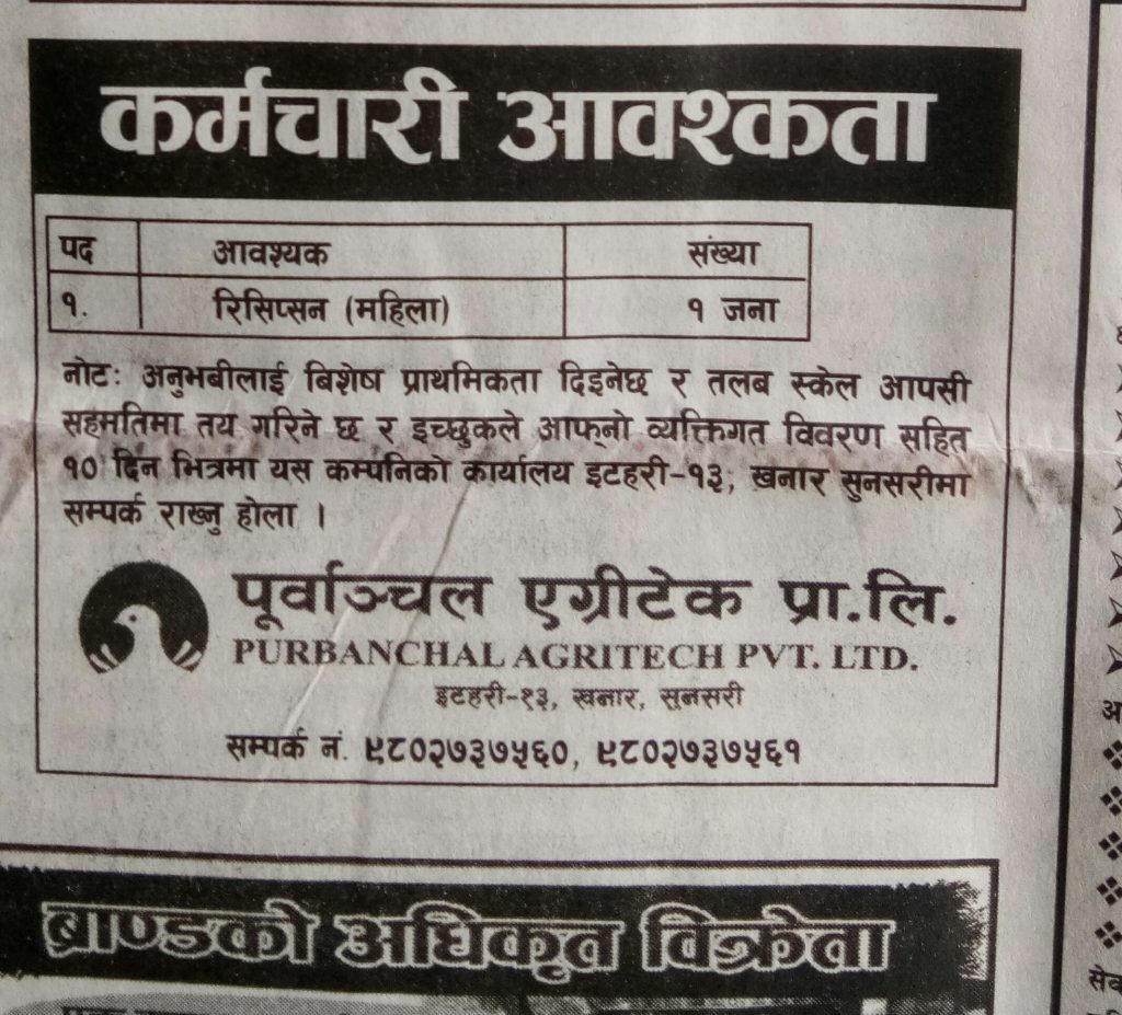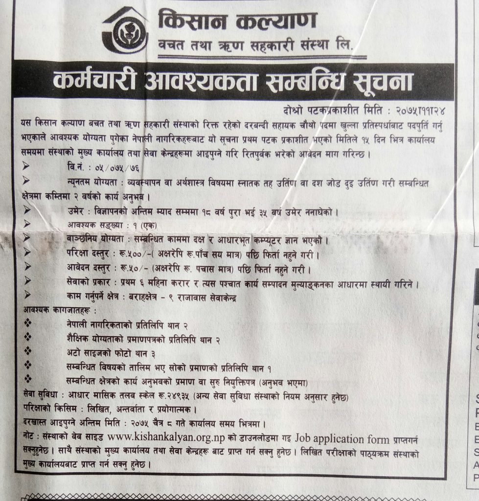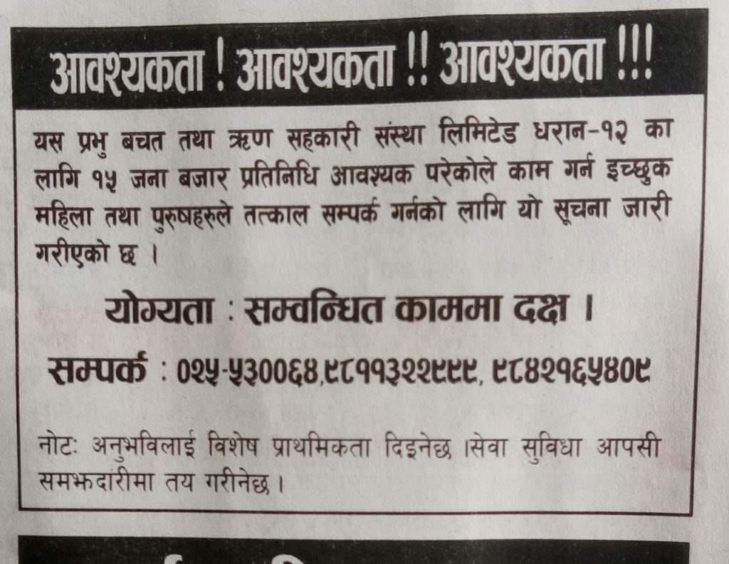 समाचार बिभिन्न कार्यालयहरुमा कर्मचारीहरुको आबश्यक्ता प्रकाशित: फाल्गुन २४, २०७५ सेयर गर्नुहोस् पढ्न समय: 0 मिनेट सेयर गर्नुहोस् गौरीगँज | आजका बिभिन्न पत्र पत्रिकाहरुमा प्रकाशित कर्मचारी आबश्यक्ता सँबन्धी बिज्ञापनहरु हेर्नुहोस प्रतिक्रिया लेख्नुहोस् झापा र मोरँगमा बढारिए पुराना दल भ्रष्टाचार मुद्दामा इप्रका गौरीगञ्जका तत्कालिन प्रमुख आपागाइ सहितले पाए सफाइ ६ महिनामा ८७ दिन मात्र हाजिर । सुचना माग्दा कामकाज ठप्प पार्ने चेतावनी । सीमा वर्ती चेरोरा जँगलमा बिबाद । दुइ जना घाइते । प्याबसन गौरीगञ्जको साँस्कृतिक कार्यक्रममा स्नोह्वाइटको ह्याट्रिक यो समाचार सेयर गर्नुहोस् फेसबुक Whatsapp Whatsapp लिङ्क कपी गर्नुहोस् छाप्नुहोस् अघिल्लो लेख देशभरीका दुई सय उनान्सय नब नियुक्त शाखा अधिकृतहरु लाई उछिन्दै गौरीगञ्जका शर्मा ले पाए गोल्ड मेडल अर्को लेख कोरोबारीमा मनाइयो नारी दिवस टिप्पणी छोड्नुहोस् Leave a Reply Cancel replyYour email address will not be published. Required fields are marked *Comment * Name Email Website Δ जनमत सर्वेक्षणमाफ गर्नुहोस्, हाल कुनै मतदान उपलब्ध छैन। - Advertisement - ताजा समाचार वडाध्यक्ष र वडासदस्य बीचको बिबाद : के थियो घटना ? गौरीगञ्ज चैत्र १०, २०८२ सरसफाइमा ध्यान नदिएपछी स्थानियले बन्द गराए कन्काइ ह्याचरी झापा चैत्र ६, २०८२ गौरीगञ्ज दर्पणले खोजिनिति गरेपछी चँदाराले तिरे बेरुजु रकम गौरीगञ्ज फाल्गुन १२, २०८२ महाभारा स्वास्थ्य चौकीको ल्याब बन्द गरेकोमा स्थानियहरुको आपत्ती गौरीगञ्ज फाल्गुन १२, २०८२