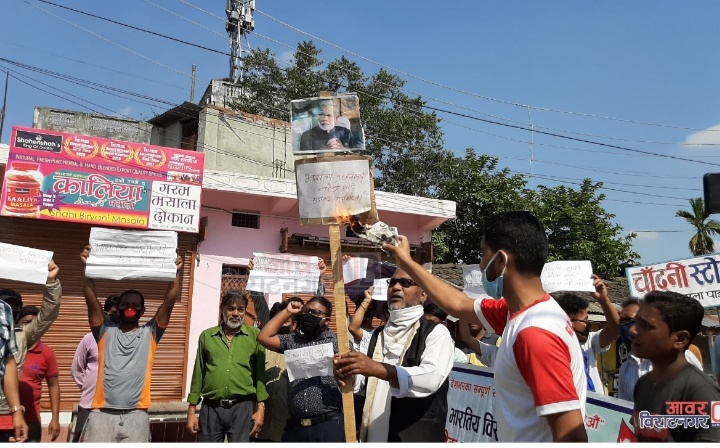भारतले नेपाली भूभाग लिपुलेक हुँदै मानसरोबर जाने सडक बनाएको बिरोधमा भारतीय प्रधानमन्त्री नरेन्द्र मोदीको तस्विर विराटनगर रानी सिमा क्षेत्रमा जलाएका हुन् ।