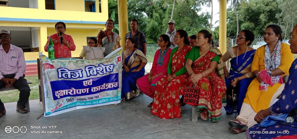 गौरीगञ्ज भदौ १२ । नेकपाको भातृ सँगठन अखिल नेपाल महिला सँघ गौरीगञ्ज गाउँकमिटीले बृक्षारोपण गरेर तीज कार्यक्रम मनाएको छ । सामान्यतया तडकभडक बन्दै गएको तीज पर्वलाइ फरक शैली र रचनात्मक बनाउन बृक्षारोपण गरी मनाएको कुरा अनेमसँघ गौरीगञ्जकी अध्यक्ष मनिका राइले बताइन् ।