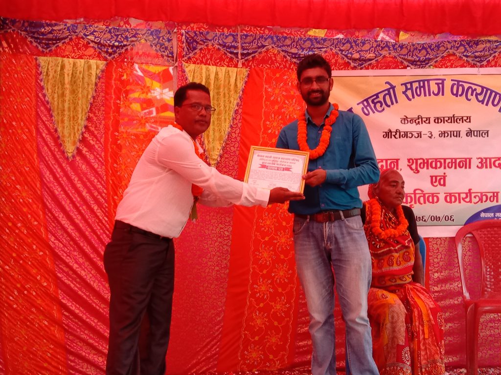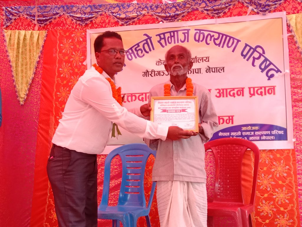 कार्यक्रममा परिषदले महतो समाजका दुइ जना जेष्ठ नागरिकहरु रामजी महतो र सुन्दाइ देवी महतो सहित सञ्चारकर्मी सुदीप अधिकारीलाइ सम्मानपत्र सहित सम्मान गरेका थिए ।