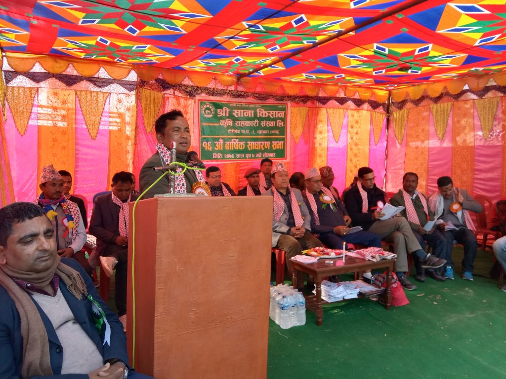 ७ पुस गौरीगञ्ज । झापाको गौरीगञ्ज गाउँपालिका १ महाभारा स्थित सानाकिसान सहकारीले १६ औ साधारणसभा सम्पन्न गरेको छ । प्रदेशसभा साँसद झलक सिँह दर्लामीको प्रमुख आतिथ्यता र गौरीगञ्ज गाउँपालिका उपाध्यक्ष दिपेन्द्र थापाको बिशेष आतिथ्यतामा भएको साधारण सभामा सँस्थाको तर्फबाट बार्षिक प्रतिबेदन सँस्थाका अध्यक्ष तिलक प्रसाद सिँह राजवँशीले प्रस्तुत गरेका थिए ।
