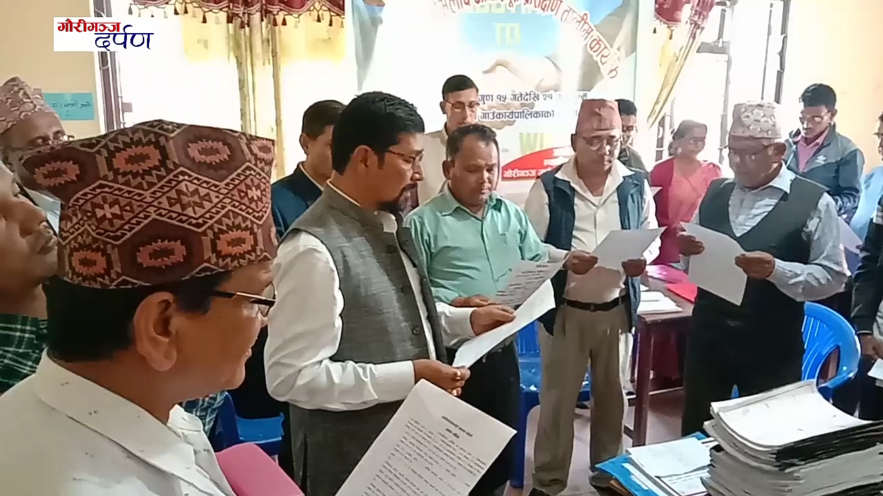 झापा २१ फागुन । गौरीगञ्ज गाउँपालिका क्षेत्रमा हुने झैझगडा तथा बिबादहरु समाधान गर्न गठित मेलमिलाप समितीका सदस्य तथा मेलमिलाप कार्यकर्ताहरुले बुधबार एक कार्यक्रमका बिच आचार मेलमिलाप कर्ताले पालन गर्नु पर्ने आचार सँहिताको सपथ खाएका छन् । उनिहरुलाइ गौरीगञ्ज गाउँपालिका उपाध्यक्ष तथा न्यायीक समिती सँयोजक दिपेन्द्र थापाले सपथ ख्वाएका छन् ।