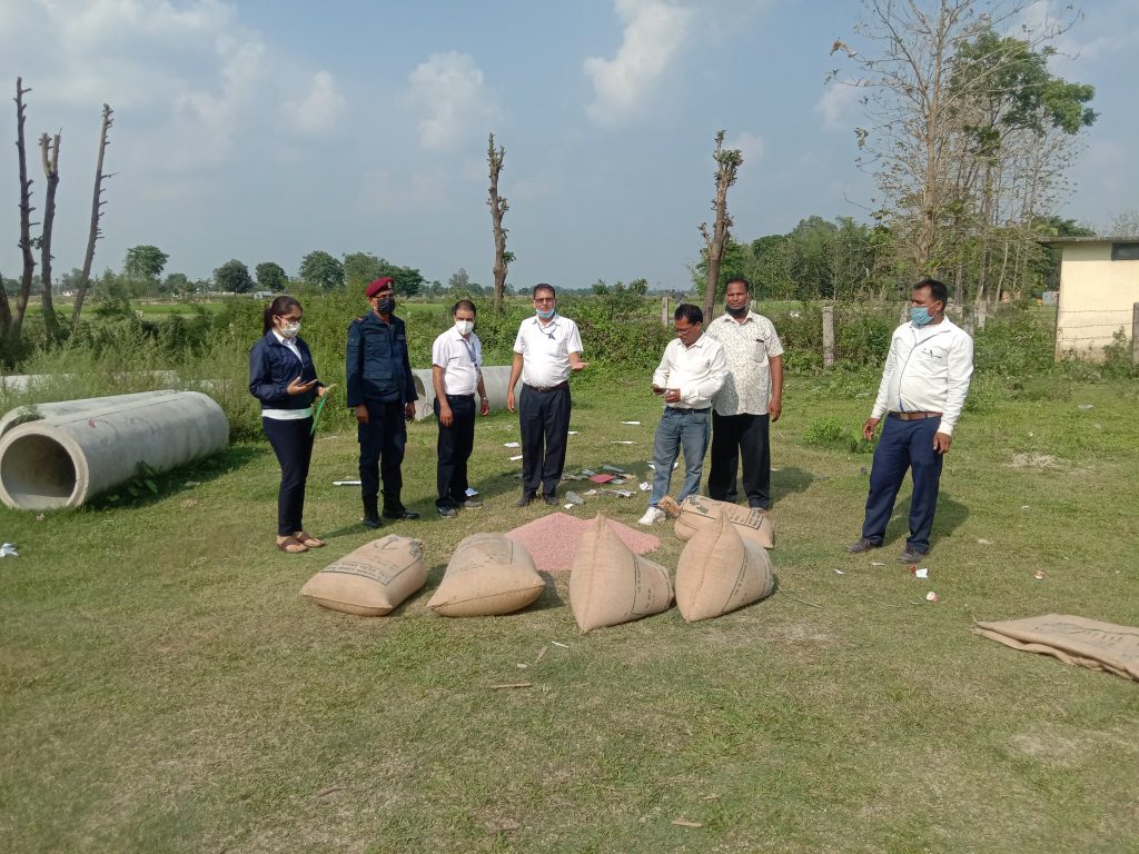 गत बैशाख २८ गते उक्त रबिन खरीद बिक्री को गोदाम बाट म्याद गुज्रेका तथा बिषादी युक्त करिब २ सय ८० किलो परीणामको ७ बोरा गहुँ बिक्री प्रयोजनका लागि धोएर सुकाइ रहेको अबस्थामा बरामद गरिएको थियो । साल्ट ट्रेडिङ कर्पोरेसनले बिउँका लागि बिक्रओ बितरण गरेको सो गहु एक सिजनका लागि मात्र प्रयोग हुने बताइएकोछ । कार्तिक महिना मै गहुँ रोप्ने सिजन सकिएका करिब छ महिना पछी पुन: बिक्री गर्नका लागि धोइ पखाली सिकाउदै गरेको अबस्थामा सो गहुँ बरामद गरिएको थियो ।जरिवानाको पुर्जी काटेपछी बरामद गरीएको सो गहुँको बिउँ वडा नँ ३ का वडाध्यक्ष मखना महतो, वडा सदस्य भवेश दास र ईलाका प्रहरी कार्यालय गौरीगञ्जका प्रहरी निरीक्षक गणेश भटराइको रोहबरमा नष्ट गरिएकोछ ।