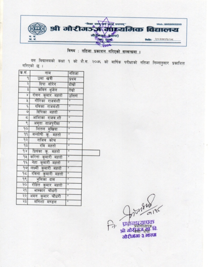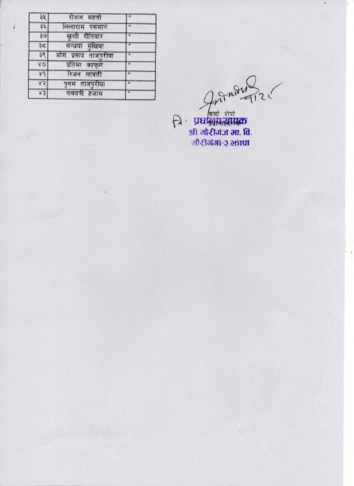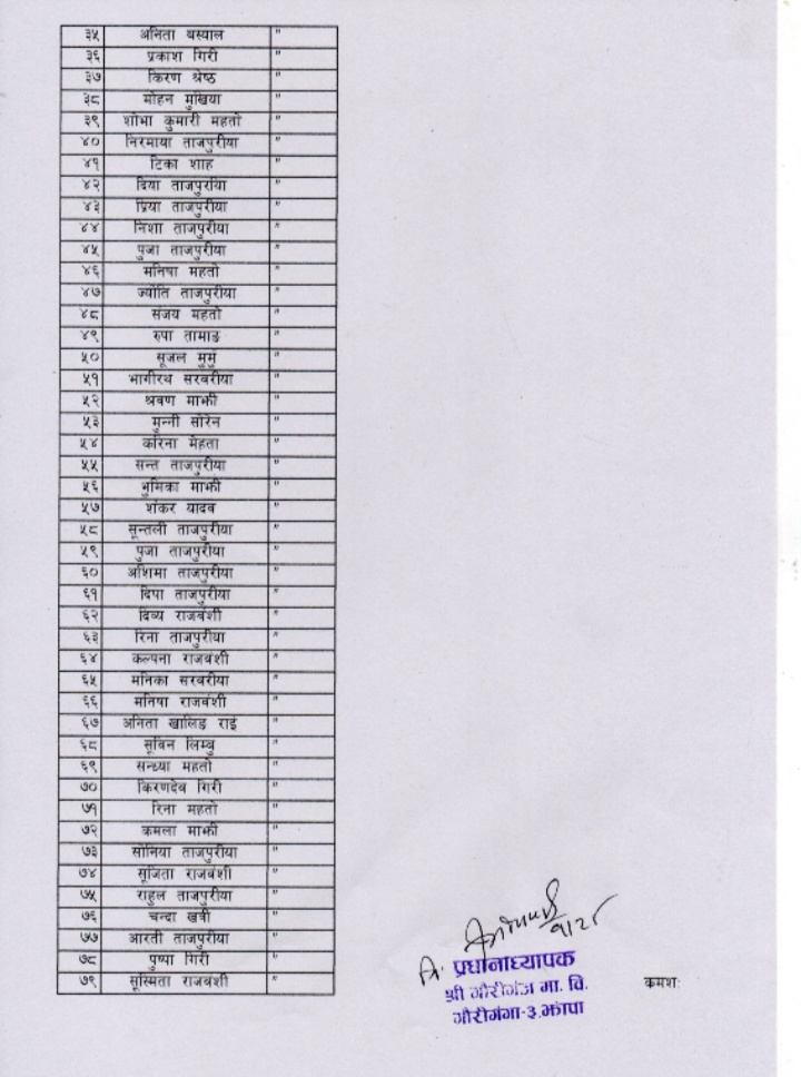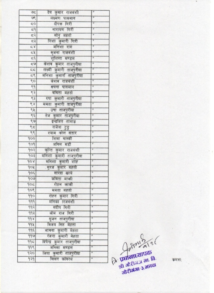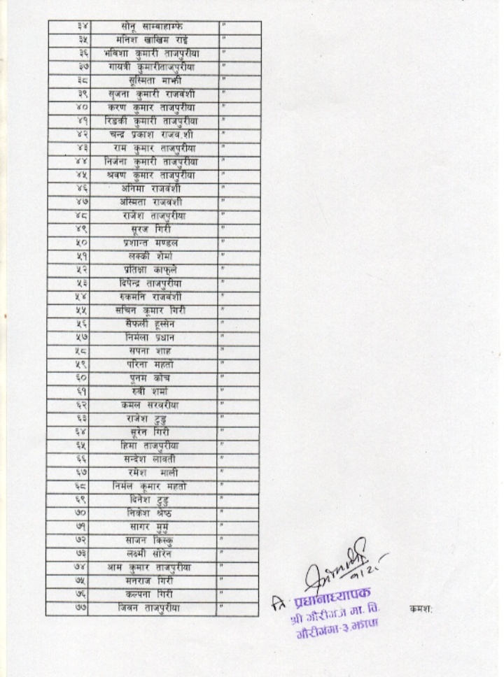 गौरीगञ्जसमाचार श्री गौरीगञ्ज मा बि को बार्षिक परीक्षाको नतिजा हेर्नुहोस प्रकाशित: बैशाख २९, २०७७ सेयर गर्नुहोस् पढ्न समय: 0 मिनेट सेयर गर्नुहोस् श्री गौरीगञ्ज मा बि को बार्षिक परीक्षाको नतिजा हेर्नुहोस प्रतिक्रिया लेख्नुहोस् वडाध्यक्ष र वडासदस्य बीचको बिबाद : के थियो घटना ? झापा र मोरँगमा बढारिए पुराना दल भ्रष्टाचार मुद्दामा इप्रका गौरीगञ्जका तत्कालिन प्रमुख आपागाइ सहितले पाए सफाइ गौरीगञ्ज दर्पणले खोजिनिति गरेपछी चँदाराले तिरे बेरुजु रकम महाभारा स्वास्थ्य चौकीको ल्याब बन्द गरेकोमा स्थानियहरुको आपत्ती यो समाचार सेयर गर्नुहोस् फेसबुक Whatsapp Whatsapp लिङ्क कपी गर्नुहोस् छाप्नुहोस् अघिल्लो लेख गौरीगञ्जको कक्षा ८ को पालिका स्तरीय परीक्षाको नतिजा हेर्नुहोस अर्को लेख सँक्रमितको सँख्या १ सय ३४ पुग्यो । एकै दिन २४ जनामा सँक्रमण पुष्टी टिप्पणी छोड्नुहोस् Leave a Reply Cancel replyYour email address will not be published. Required fields are marked *Comment * Name Email Website Δ जनमत सर्वेक्षणमाफ गर्नुहोस्, हाल कुनै मतदान उपलब्ध छैन। - Advertisement - ताजा समाचार सरसफाइमा ध्यान नदिएपछी स्थानियले बन्द गराए कन्काइ ह्याचरी झापा चैत्र ६, २०८२ गौरीगञ्ज दर्पणले खोजिनिति गरेपछी चँदाराले तिरे बेरुजु रमक गौरीगञ्ज फाल्गुन १२, २०८२ झापा जिल्ला स्तरीय राष्ट्रपति रनिङ शिल्ड प्रतियोगिताको उपाधी अर्जुनधारा नगरपालिका लाइ झापा फाल्गुन ६, २०८२ कार्यालयको कामकाज नै ठप्प हुने गरि अधिकाँश कर्मचारी वर्ल्डकप र तालिम तिर गौरीगञ्ज फाल्गुन १, २०८२