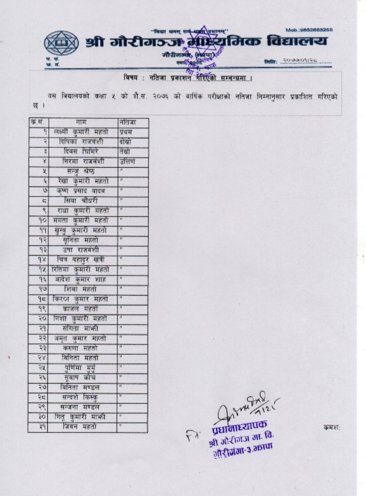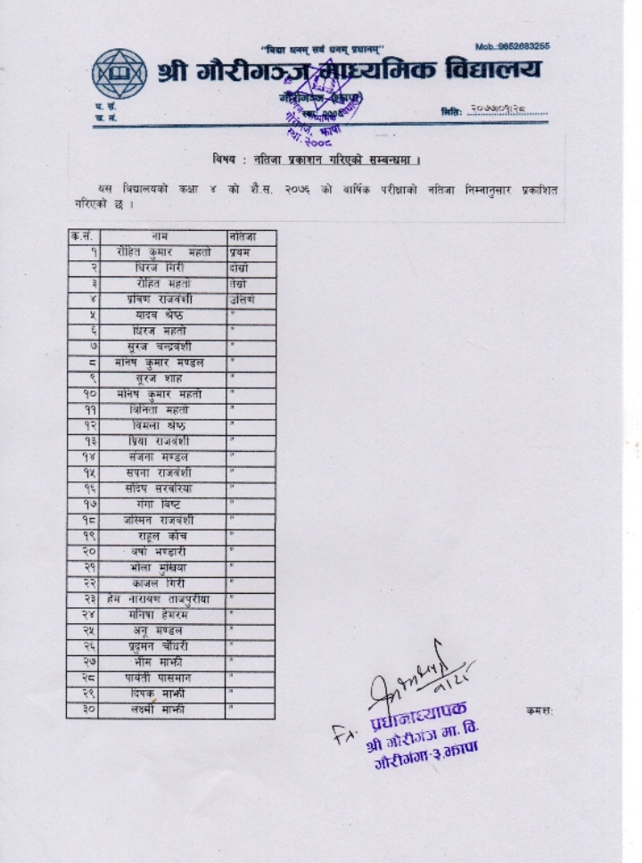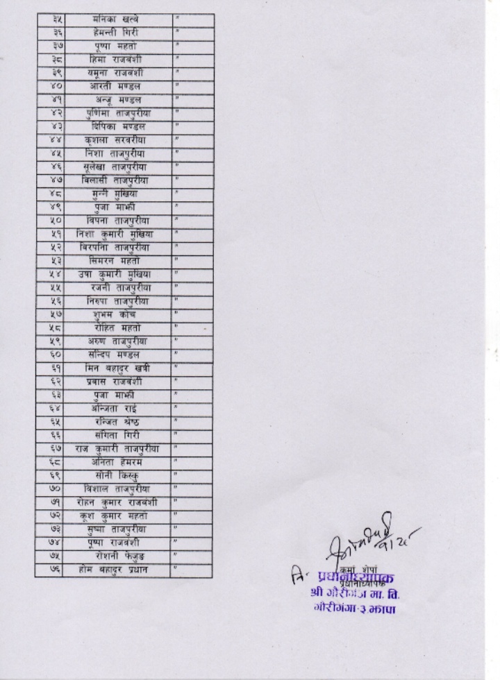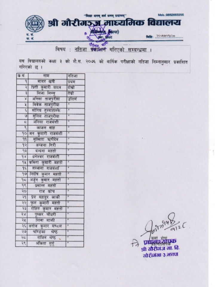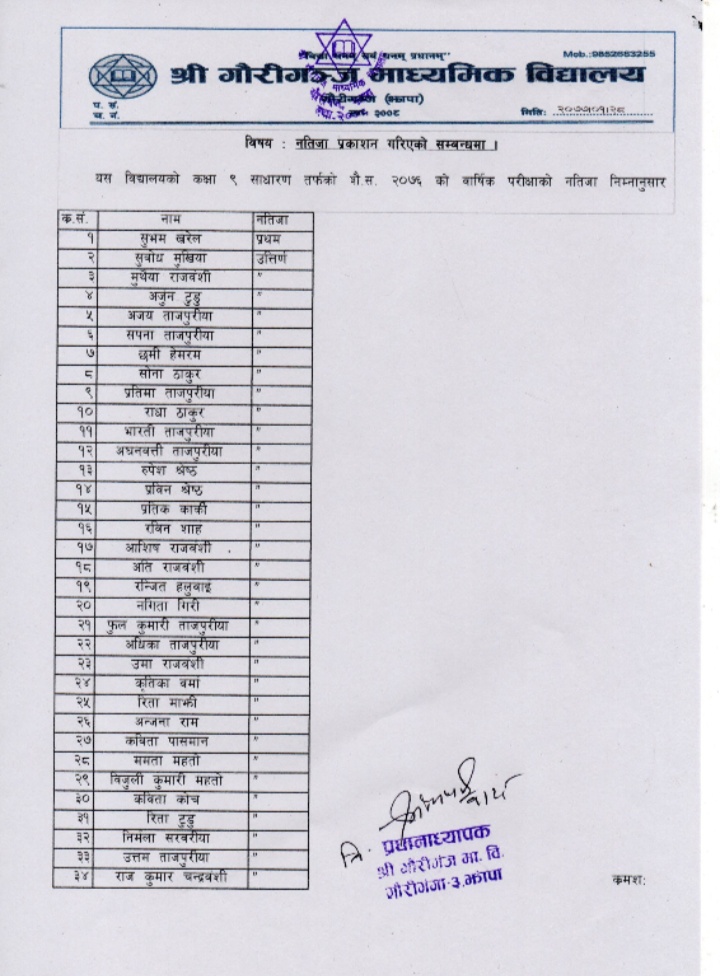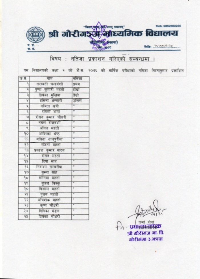गौरीगञ्जसमाचार श्री गौरीगञ्ज मा बि को बार्षिक परीक्षाको नतिजा हेर्नुहोस प्रकाशित: बैशाख २९, २०७७ सेयर गर्नुहोस् पढ्न समय: 0 मिनेट सेयर गर्नुहोस् श्री गौरीगञ्ज मा बि को बार्षिक परीक्षाको नतिजा हेर्नुहोस प्रतिक्रिया लेख्नुहोस् वडाध्यक्ष र वडासदस्य बीचको बिबाद : के थियो घटना ? झापा र मोरँगमा बढारिए पुराना दल भ्रष्टाचार मुद्दामा इप्रका गौरीगञ्जका तत्कालिन प्रमुख आपागाइ सहितले पाए सफाइ गौरीगञ्ज दर्पणले खोजिनिति गरेपछी चँदाराले तिरे बेरुजु रकम महाभारा स्वास्थ्य चौकीको ल्याब बन्द गरेकोमा स्थानियहरुको आपत्ती यो समाचार सेयर गर्नुहोस् फेसबुक Whatsapp Whatsapp लिङ्क कपी गर्नुहोस् छाप्नुहोस् अघिल्लो लेख गौरीगञ्जको कक्षा ८ को पालिका स्तरीय परीक्षाको नतिजा हेर्नुहोस अर्को लेख सँक्रमितको सँख्या १ सय ३४ पुग्यो । एकै दिन २४ जनामा सँक्रमण पुष्टी टिप्पणी छोड्नुहोस् Leave a Reply Cancel replyYour email address will not be published. Required fields are marked *Comment * Name Email Website Δ जनमत सर्वेक्षणमाफ गर्नुहोस्, हाल कुनै मतदान उपलब्ध छैन। - Advertisement - ताजा समाचार सरसफाइमा ध्यान नदिएपछी स्थानियले बन्द गराए कन्काइ ह्याचरी झापा चैत्र ६, २०८२ गौरीगञ्ज दर्पणले खोजिनिति गरेपछी चँदाराले तिरे बेरुजु रमक गौरीगञ्ज फाल्गुन १२, २०८२ झापा जिल्ला स्तरीय राष्ट्रपति रनिङ शिल्ड प्रतियोगिताको उपाधी अर्जुनधारा नगरपालिका लाइ झापा फाल्गुन ६, २०८२ कार्यालयको कामकाज नै ठप्प हुने गरि अधिकाँश कर्मचारी वर्ल्डकप र तालिम तिर गौरीगञ्ज फाल्गुन १, २०८२