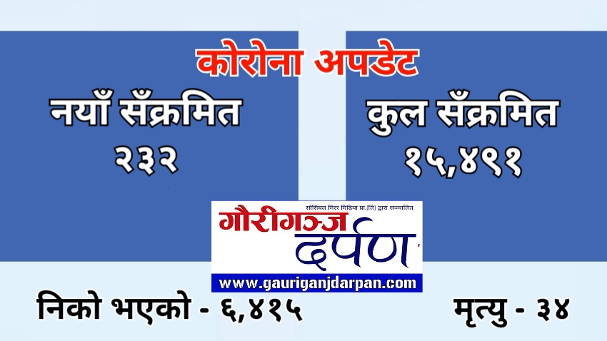 शुक्रबारसम्म नेपालमा कोरोना संक्रमितको संख्या १५ हजार दुई सय ५९ थियो। यो संख्या बढेर शनिबार १५ हजार चार सय ९१ पुगेको हो।