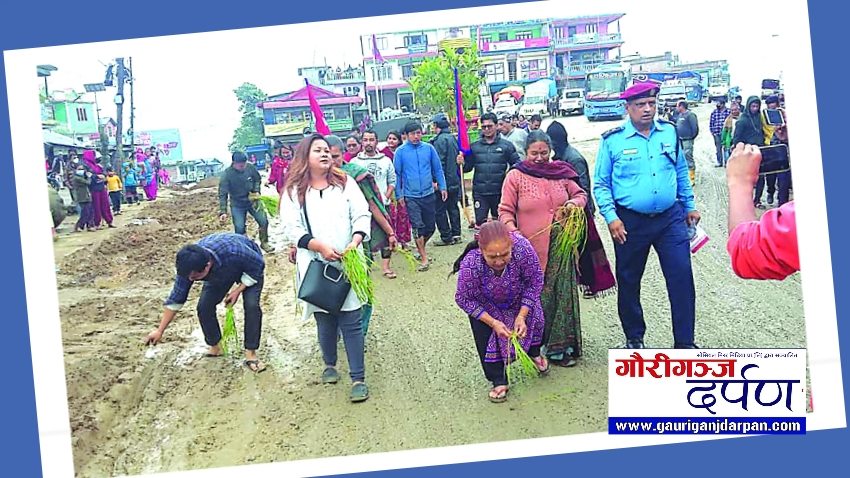 देवानगञ्ज गाउँपालिका क्षेत्रका सडकमा हिँड्न नसकिने भएपछि स्थानीय युवाहरूले सडकमै धान रोपेर विरोध जनाएका छन् । सोमबार गाउँपालिकाको कार्यालयअगाडि नै धान रोपाइँ गर्दै त्यहाँका युवाहरूले बाटो मर्मत गर्न दबाव दिएका हुन् । स्थानीय पत्रकार नसिम अन्सारीका अनुसार वर्षाको पानीले सडक हिलाम्मे भएपछि देवानगञ्जका युवाहरूले विभिन्न नाराबाजी गर्दै सडक मर्मत गर्न ध्यानाकर्षण गराएका छन् । धान दिवसको अवसर पारेर युवाहरूले हिलाम्मे सडक मर्मत नगरेको भन्दै विरोध जनाएको उनले बताए । डेढ वर्षदेखि देवानगञ्जको बजार क्षेत्रमा बाटो मर्मत गर्न पटक–पटक ध्यानाकर्षण गराए पनि कुनै सुनुवाइ नभएपछि सडकमै धान रोपाइँ गर्दै विरोध जनाएको स्थानीय फहाद अन्सारीले बताए । डेढ वर्षदेखि बाटो जीर्ण भएको बताउँदै उनले भने, ‘तर, स्थानीय र सङ्घीय सरकारले बाटो बनाउन चासो देखाएनन् ।’ बाटो नबन्दा उक्त क्षेत्रमा पटक–पटक दुर्घटना हुने क्रमसमेत बढेको अन्सारीको कथन छ । यता बाटो हिलाम्मे भएकोबारे जिज्ञासाको प्रतिक्रिया दिँदै देवानगञ्ज गाउँपालिकाका अध्यक्ष लालीप्रसाद मेहताले पानी पर्ने क्रम जारी रहेकोले सडक हिलाम्मे भएको बताए । मौसम अनुकूल भएपछि तत्काल बाटो बनाइने उनको भनाइ थियो ।