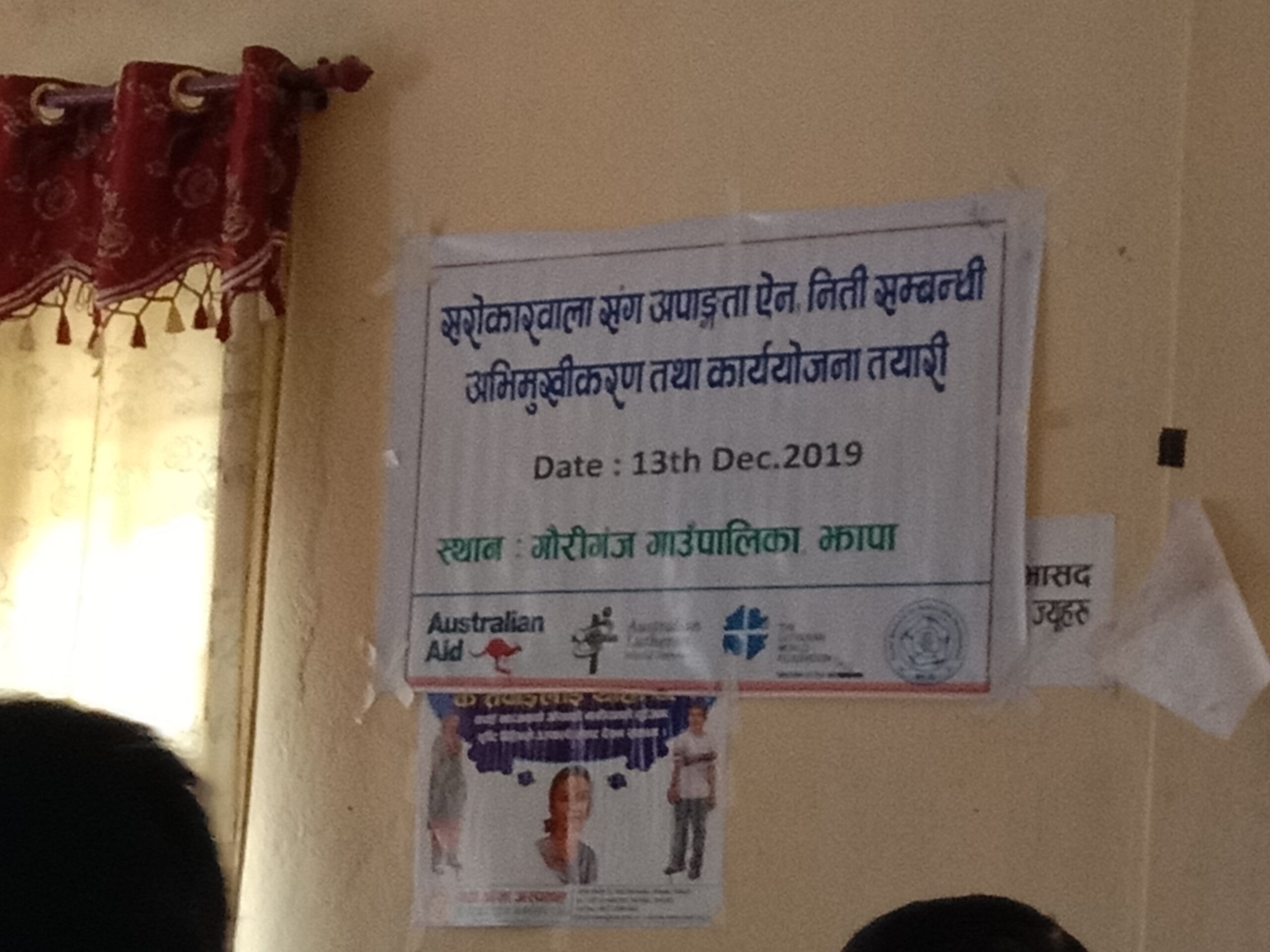गाउँपालिका उप प्रमुख दिपेन्द्र थापाको प्रमुख आतिथ्यतामा सम्पन्न अभिमुखिकरणमा अपाँगता सहयोग समिती गौरीगञ्जका अध्यक्ष शेरमान बुढाथोकीले सभापतित्व गरेका थिए भने अपाँगता सहयोग समिती प्रदेश नँ १ का सदस्य मदन बोहरा तथा कुमार चुँडालले कार्यक्रममा सहजीकरण गरेका थिए ।