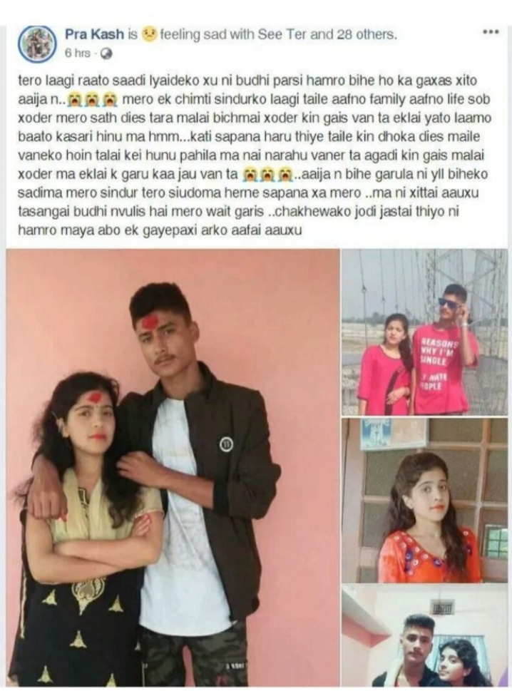 पाँच दिन पछि सिउँदोमा सिन्दुर भरेर आफ्नो घरमा औपचारीक रुपमा भित्र्याउने सपना बोकेका प्रकाशको सपना पनि भताभुगं भयो । प्रेमीकाको निधनले विक्षिप्त बनेका प्रकाशले सामाजिक सञ्जालमा निकै मार्मिक स्टाटस लेखेका छन् । उनले रमितासंग विताएका पलका तस्बिर सार्वजनिक गर्दै अब आफु पनि छिट्टै आउने लेखेका छन् । उनले लेखेका छन्, तेरो लागि रातो साडी पनि किनेको छु नी बुढि हाम्रो पर्सी विहे हो ।
