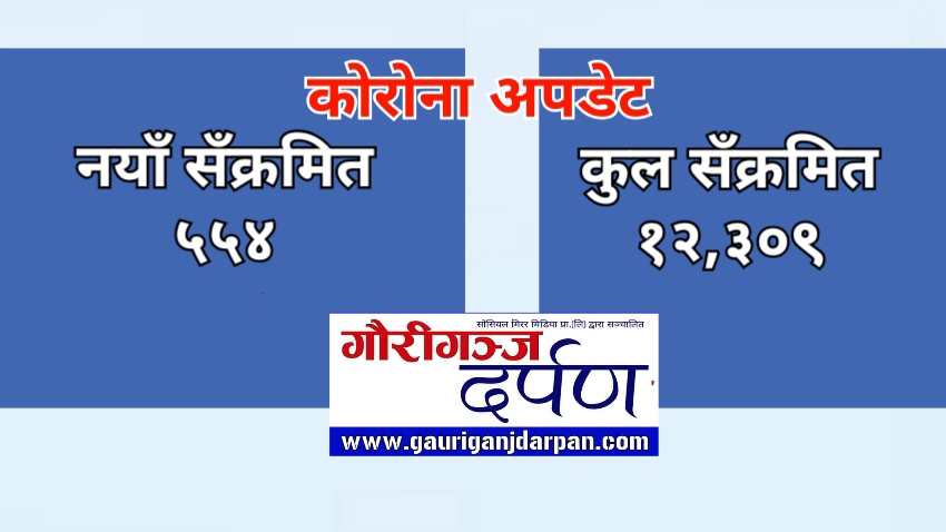 काठमाडौं, असार १३ गते । नेपालमा पछिल्लो परीक्षणमा थप ५५४ जनामा कोरोना संक्रमण पाइएको छ । यो सँगै नेपालमा कोरोना संक्रमितको संख्या १२ हजार ३०९ पुगेको छ ।