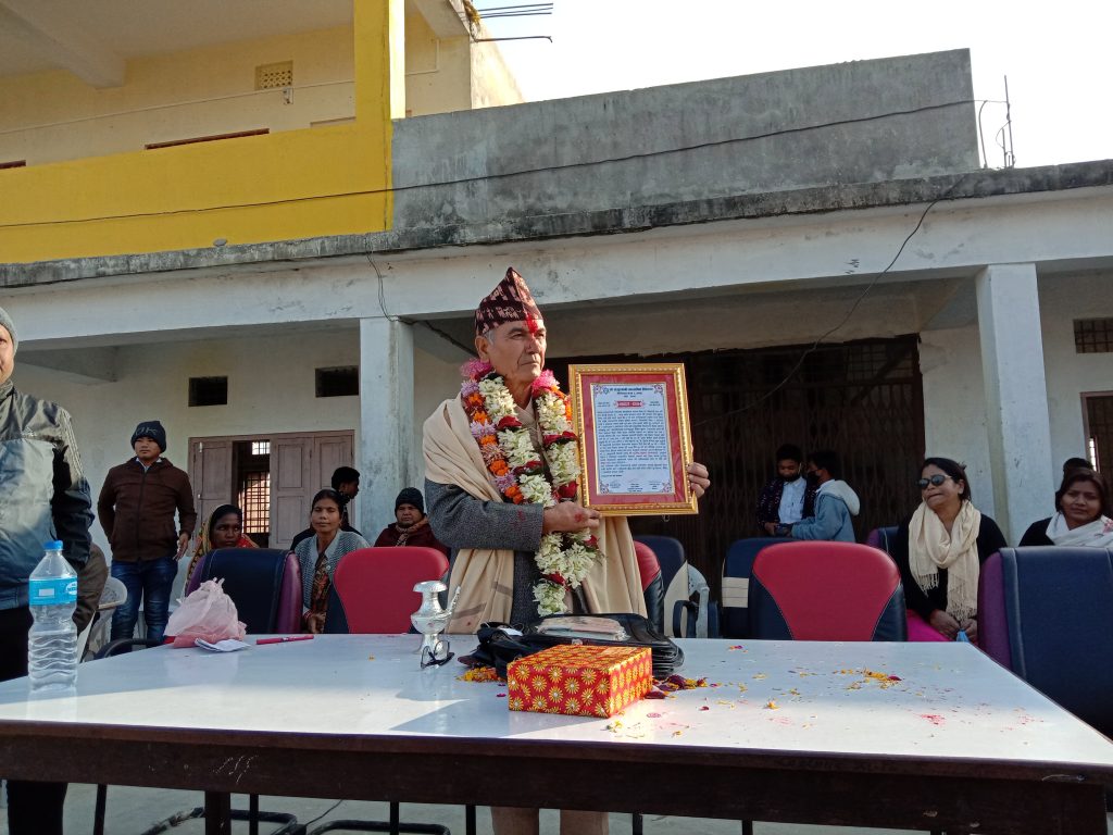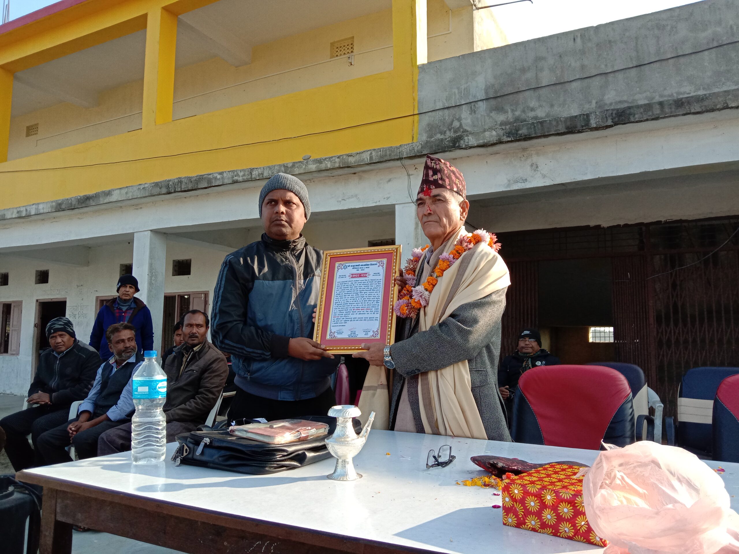 बिद्यालय ब्यबस्थापन समिती अध्यक्ष चन्द्र प्रसाद यादबको अध्यक्षतामा भएको बिदाइ कार्यक्रममा शिक्षक ढकाललाइ कदर पत्र सहित दोसल्ला ओढाएर बिदाइ गरिएको थियो भने बिद्यालय परिबार शिक्षक तथा बिद्यार्थीहरुका तर्फबाट समेत फुलमाला सहित उपहारहरु प्रदान गरिएको थियो ।