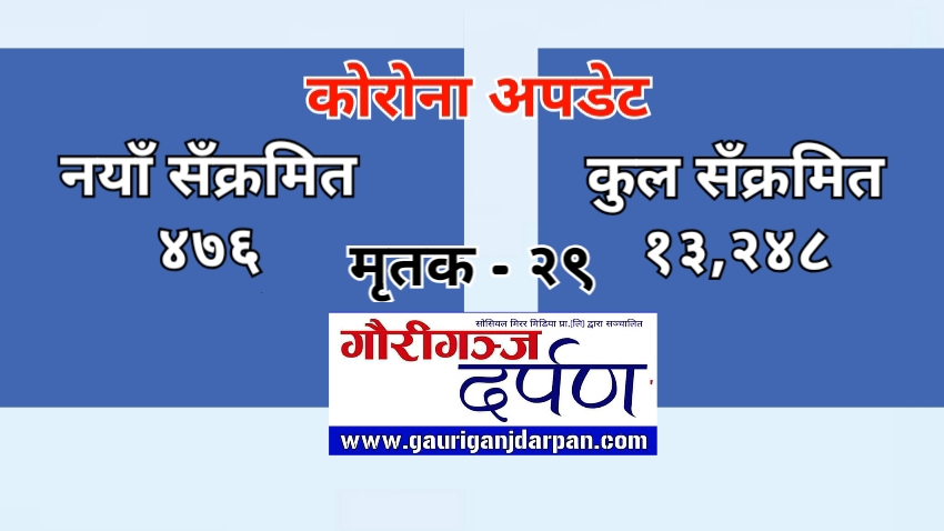 १५ असार, काठमाडौं । नेपालमा सोमबार ४ सय ७६ जनामा कोरोना संक्रमण देखिएको छ । स्वास्थ्य तथा जनसंख्या मन्त्रालयका अनुसार कुल संक्रमितको संख्या १३ हजार २४८ पुगेको छ । निको हुनेको सँख्या ३१४० पुगेको छ भने मृत्यु हुनेको सँख्या २९ पुगेको छ ।